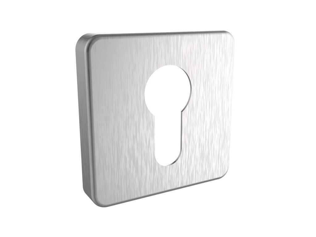 Sada čtvercových štítu (rozet) pro vložku (PZ) k řade kování DESIGN/H. Štíty (rozety) jsou vyrobeny z nerezové oceli. Rozměr štítů (rozet) 53 x 53 mm.
